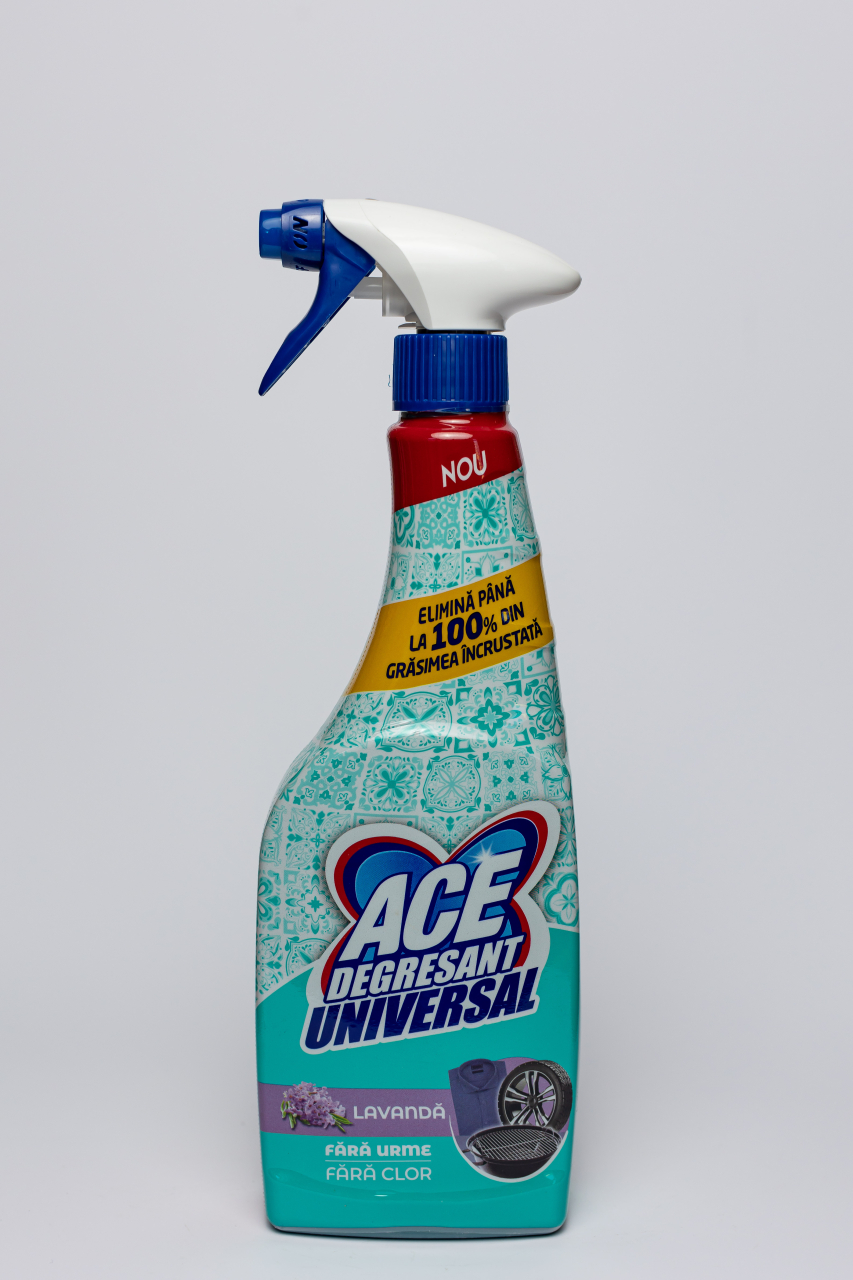 Noul spray degresant universal ACE cu parfum de lavanda: elimina pana la 100% din grasimea incrustata!
