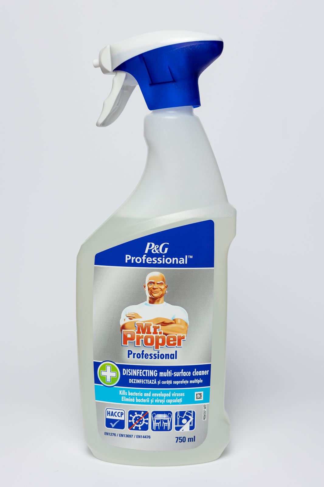 Spray gata de utilizat pentru curatarea si dezinfectarea usoara suprafetelor interioare si a sticlei. Eficient pentru curatarea si dezinfectarea majoritatii suprafetelor interioare lavabile, inclusiv sticla si inox/otel inoxidabil (suprafete de toaleta, suprafete de lucru, ferestre etc.); Eficient pentru curatarea dungilor unsuroase si a amprentelor de pe suprafetele interioare, cum ar fi mese, birouri, scaune, telefoane, manere pentru usi, articole din sticla.ATENTIONARE:Provoaca o iritare grava a ochilor. A nu se lasa la indemana copiilor. Daca este necesara consultarea medicului, tineti la indemana recipientul sau eticheta produsului. IN CAZ DE CONTACT CU OCHII: Clatiti cu atentie cu apa timp de mai multe minute. Scoateti lentilele de contact, daca este cazul si daca acest lucru se poate face cu usurinta. Continuati sa clatiti. Contine Benzisothiazolinone. Poate provoca o reactie alergica.